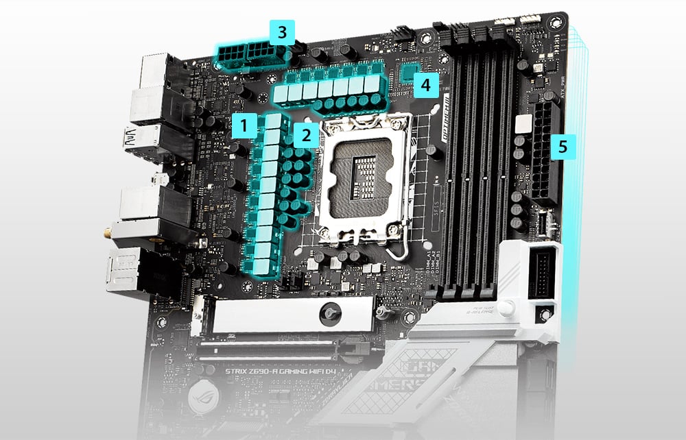 With proprietary memory trace layout tweaks that improve signal integrity and mitigate noise, OptiMem III allows memory kits to run at lower latencies, reduced voltages, and operate at higher frequencies. Stack ROG Strix Z690-A Gaming WiFi D4 with your favorite modules and maximize the throughput of the 12th Gen Intel Core Alder Lake processor for applications that demand massive bandwidth.