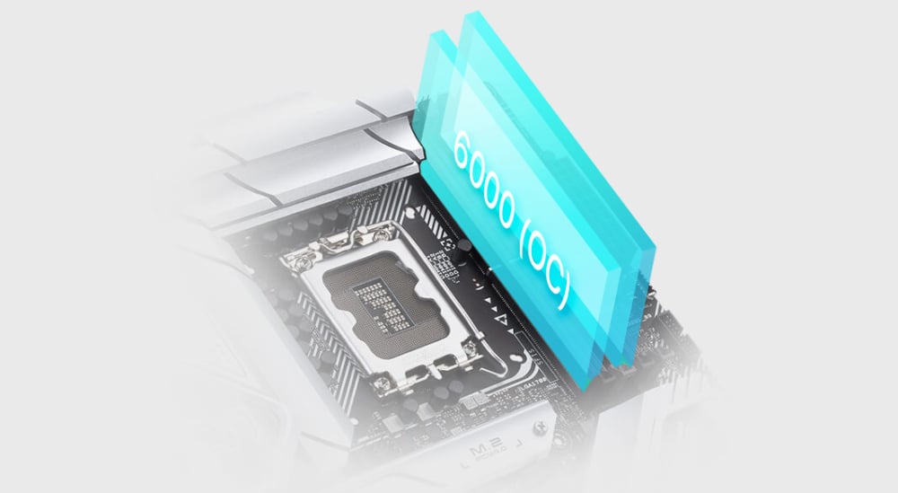 Prime Z690-A enhances DDR5 performance by providing overclocking options for not only high-speed kits, but even entry-level memory modules that have a locked power management IC (PMIC).